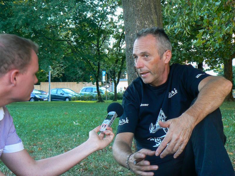 Nasmejani Paolo je ob vrnitvi privolil tudi v pogovor za naš portal. S črno motoristično odpravo in dišečo cigaro v ustih nas je pričakal skupaj s svojo pasjo sopotnico Smillo.