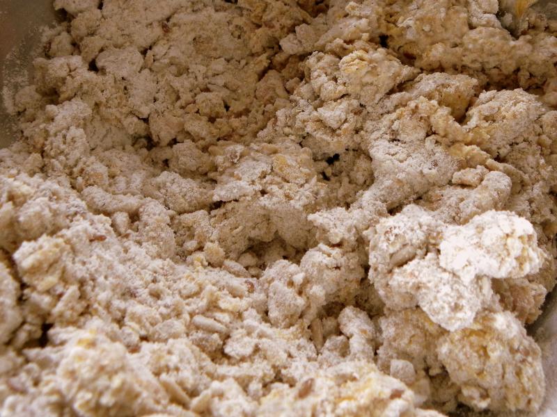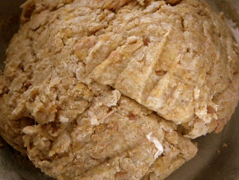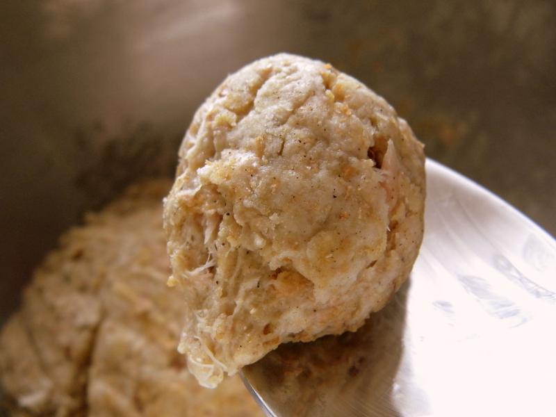 Vse sestavine s kuhalnico zamešamo v gosto zmes, po potrebi dodamo še malo vode, da je zmes ravno prav gosta, da jo oblikujemo z žlico.
