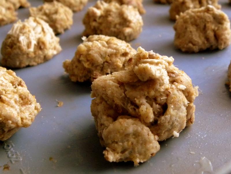 Z žlico oblikujemo manjše kupčke in jih polagamo na namaščen pekač ali silikonsko podlago.