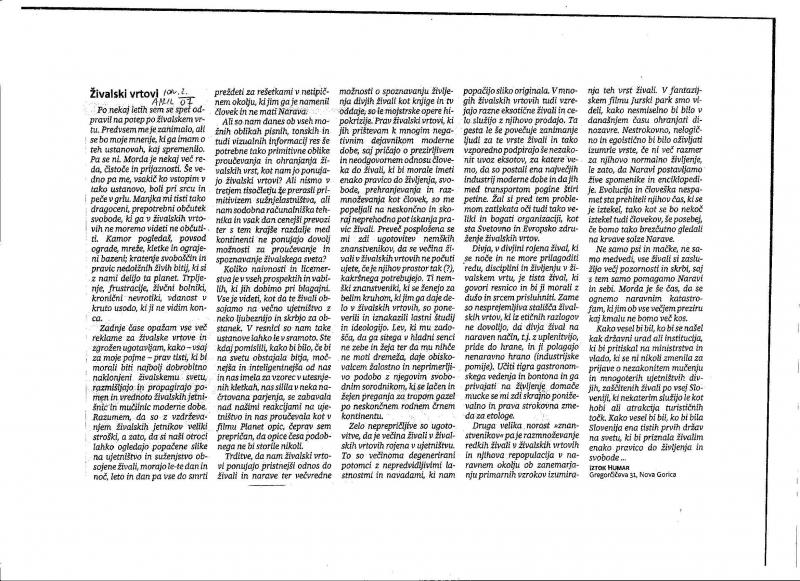 Več o živalskih vrtovih najdete na KLIK in KLIK ter v odličnem pismu g. Iztoka Humarja, ki je povedalo vse, avtorju pisma se ob tej priložnosti zanj iskreno zahvaljujem (povečate s klikom na fotografijo).