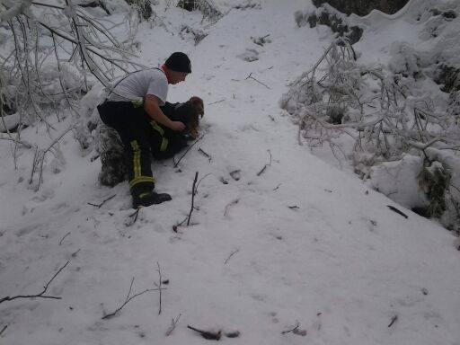 V zimski ujmi so slovenski gasilci rešili psička Bonija