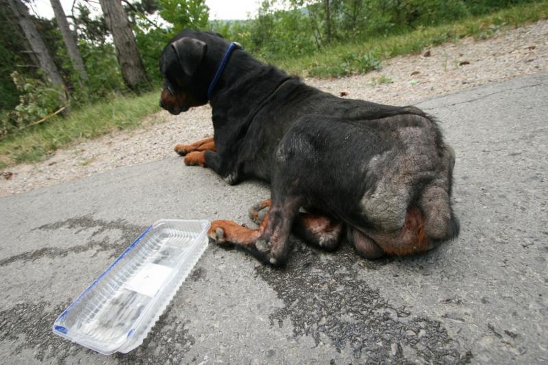 Še do dobra se ni polegel prah okrog primerov mučenja in zanemarjanja živalii na Obali, so člani Obalnega društva proti mučenju živali na cesti v Kubedu meseca julija naleteli na srhljiv prizor. Na sredi ceste je obležal shiran, žejen in od bolh objeden pes.