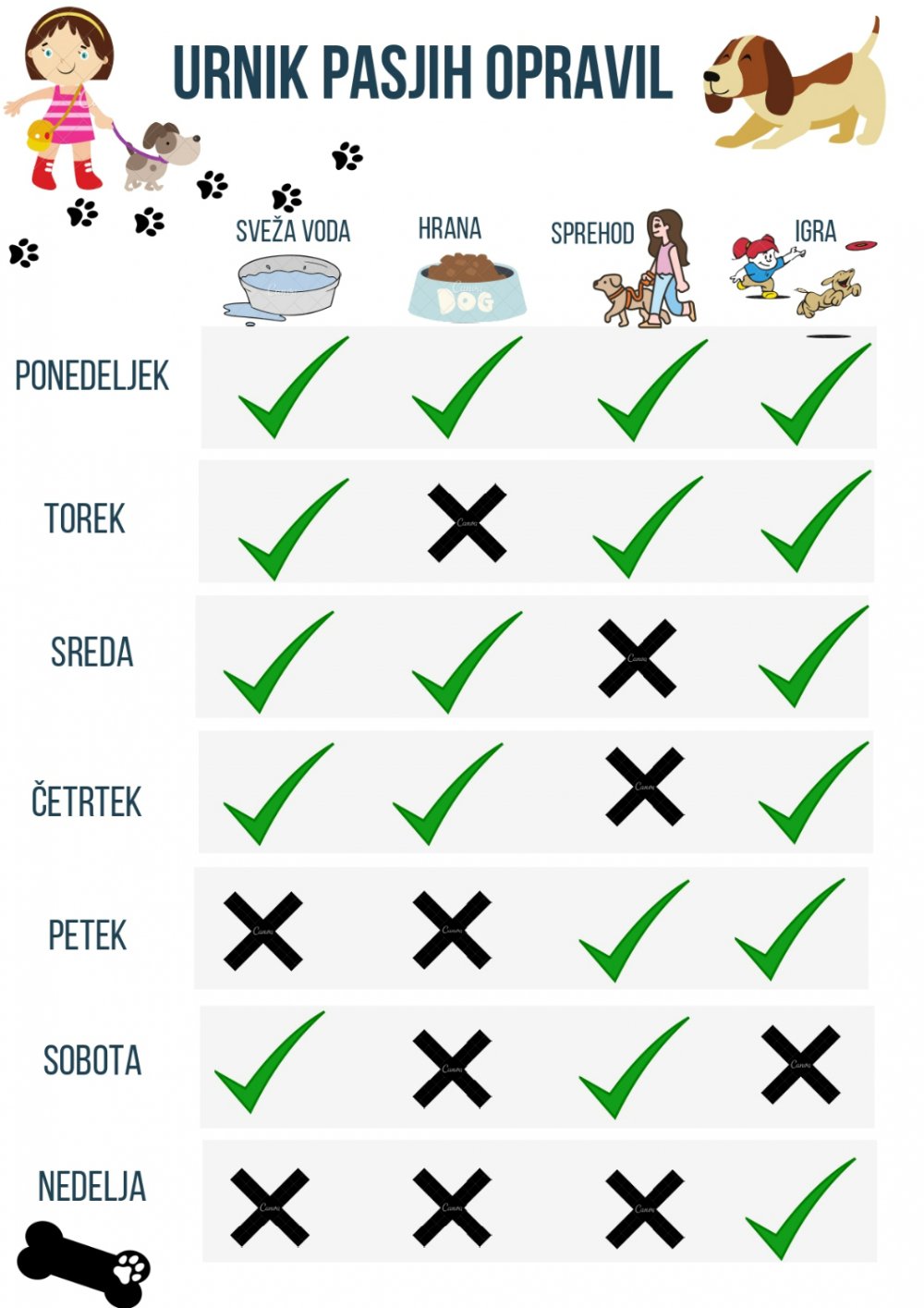 Prilagamo primer tabele, ki jo lahko skupaj z otrokom oblikujete in jo obesite na oglasno desko. Na tabeli so s slikami in opisanimi navodili jasno obrazložena opravila, ki jih vaš otrok lahko že opravlja.