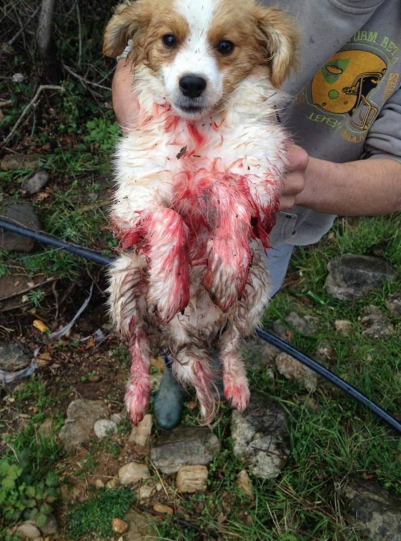 Kinolog je v malega psa poslal na stotine šiber, pes zdaj okreva v Sloveniji
