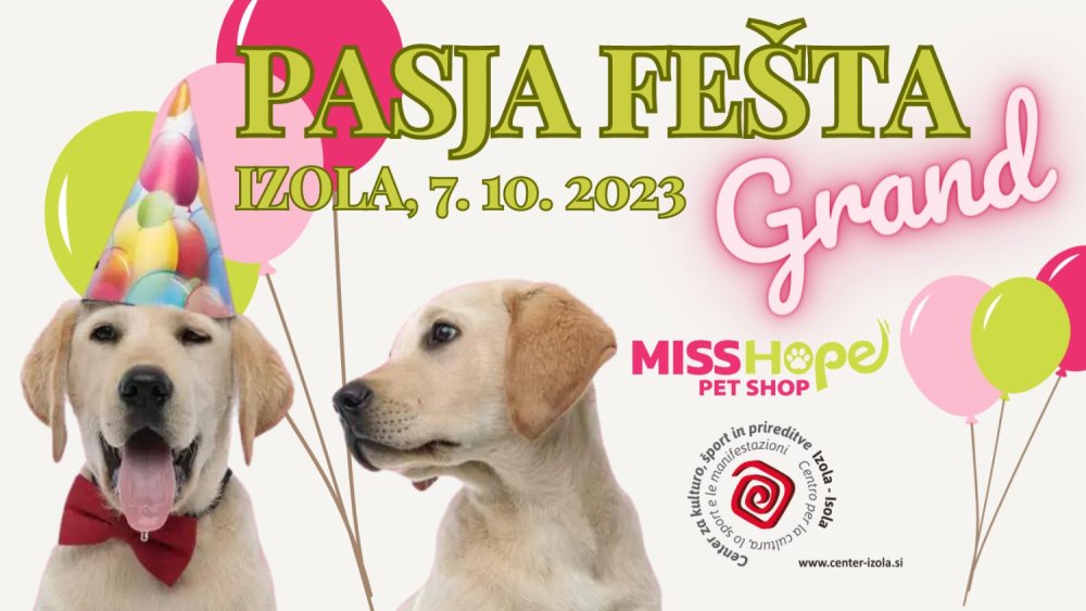 Prvo soboto v oktobru bomo Izolo okupirali ljubitelji psov! Družili se bomo na Pasji fešti GRAND, ki bo potekala v soboto, 7. 10., med 9. in 17. uro. Izola se bo za en dan spremenila v “prestolnico psov”. Se nam boste pridružili tudi vi?