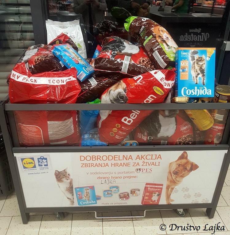 V vseh 52 Lidlovih poslovalnicah so že od ponedeljka postavljene zbiralne košare, v katere lahko kupci odlagajo svoj prispevek v obliki hrane za enega od slovenskih društev za zaščito živali oz. lokalno zavetišče.