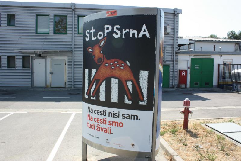 Plakatna akcija po slovenskih mestih: "Stop jež! Stop srna! Stop zajec!..."