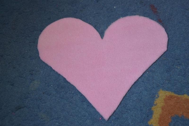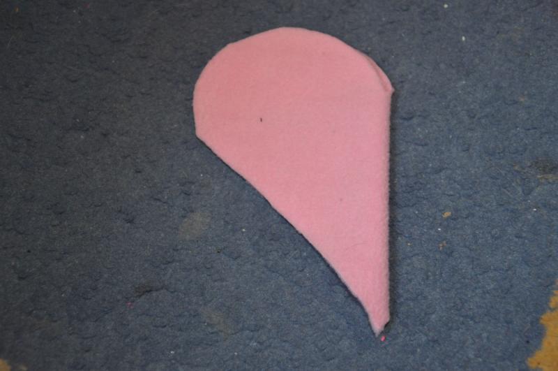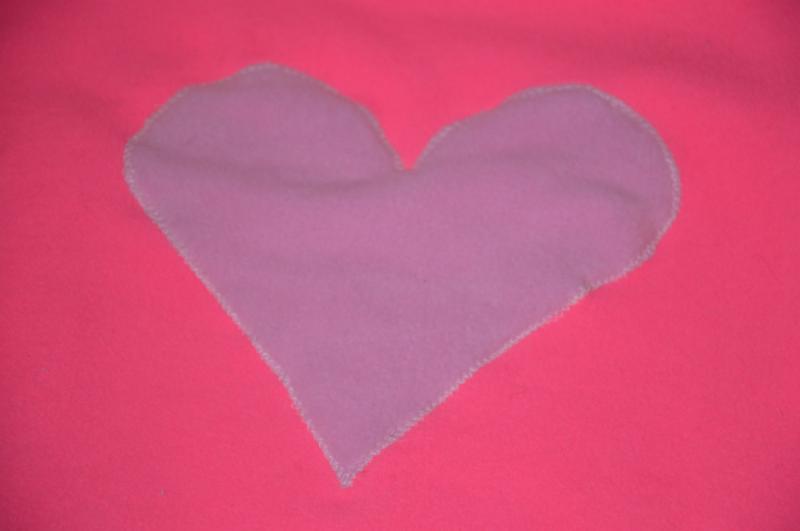Potem ponovno odrežemo trak in ga prišijemo na kapuco in nato kapuco na pulover. Iz blaga izrežemo še srček, ter ga s cik cak šivi prišijemo na hrbet.