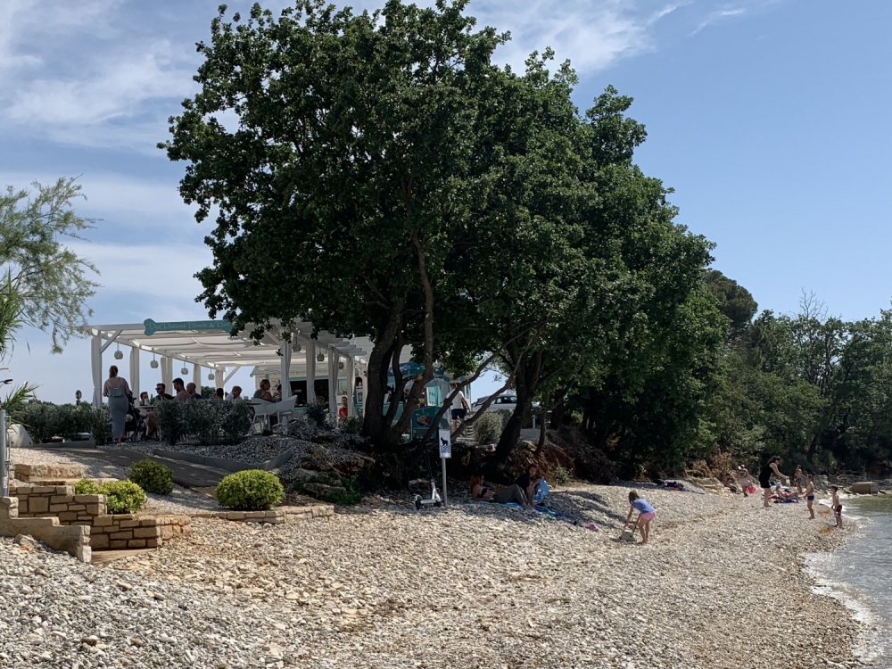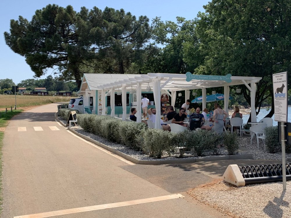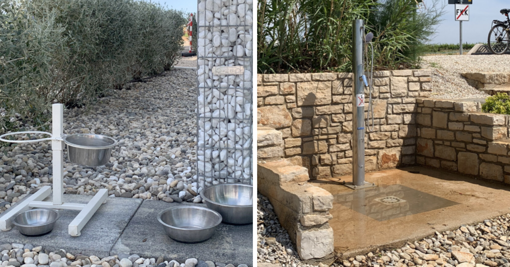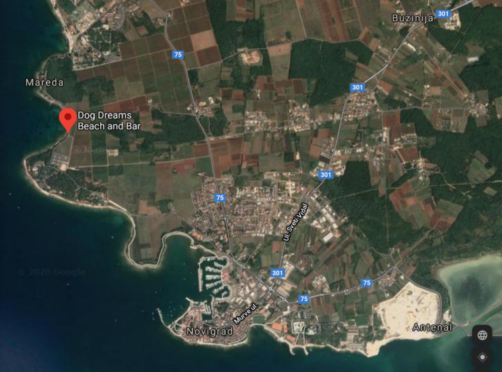 Vse to vas bo pričakalo ob poti med avtokampom v Novigradu in priljubljenim krajem Dajla. Ob plaži je na voljo parkirno mesto – nekaj korakov v desno pa svetlo moder objekt v obliki pasje hišice, ki skriva veliko dobrot – tako za vas, kakor vašega kužka. Že ob vhodu vas bo pozdravilo nadvse prijazno osebje, pobožalo vašega kosmatinca in mu ponudilo pasji keks. A pasji keksi (mimogrede – so slovenski izdelek) niso edino, česar se bodo razveselili vaši kosmatinci.