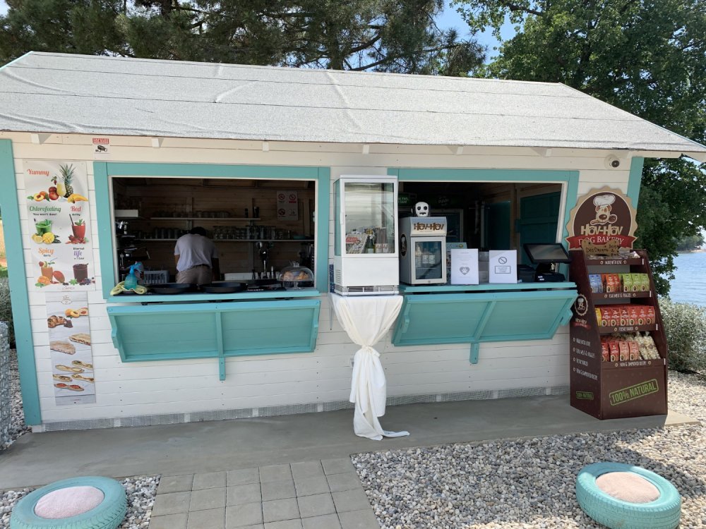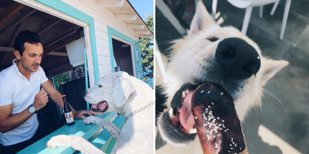 Tako bogate ponudbe izdelkov, ki so namenjeni samo psom, sami še nismo opazili v nobenem od "znanih" lokalov. Kar je najpomembneje – vsi so popolnoma naravni in psom neškodljivi. Nekaj primerov? Pasja penina in pivo, pasji sladoled in tortice, pasja pica in krompirček, pasji keksi in pokovka. Ob vhodu v lokal je večje število posodic s svežo vodo, ob plaži pa tudi pasji tuš.