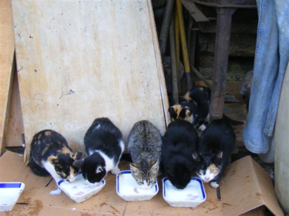 Mačke se v iskanju preživetja pogosto selijo po vasi in tako pridemo do problema brezdomnih mačk. Mačka je skrbniška žival in vsako brezdomno mačje bitje je posledica nekega neodgovornega skrbnika, lahko tudi nekaj mačjih generacij nazaj. Te mačke so nesocializirane, divje, kot jim pravimo in se trudijo preživeti v okolici. V društvu skrbimo tudi za prostoživeče muce – v Pomurju jih je pod našim okriljem okoli 150. To pomeni, da smo vse veterinarsko pregledali, sterilizirali / kastrirali, naši prostovoljci pa jih vsakodnevno hranijo. Kar veliko hrane je potrebno, da nahranimo 150 muc na dan, vsak dan, dan za dnem. Hvaležni smo, da smo obdarjeni s takšnimi ljudmi, ki s neverjetno predanostjo skrbijo za prostoživeče muce.